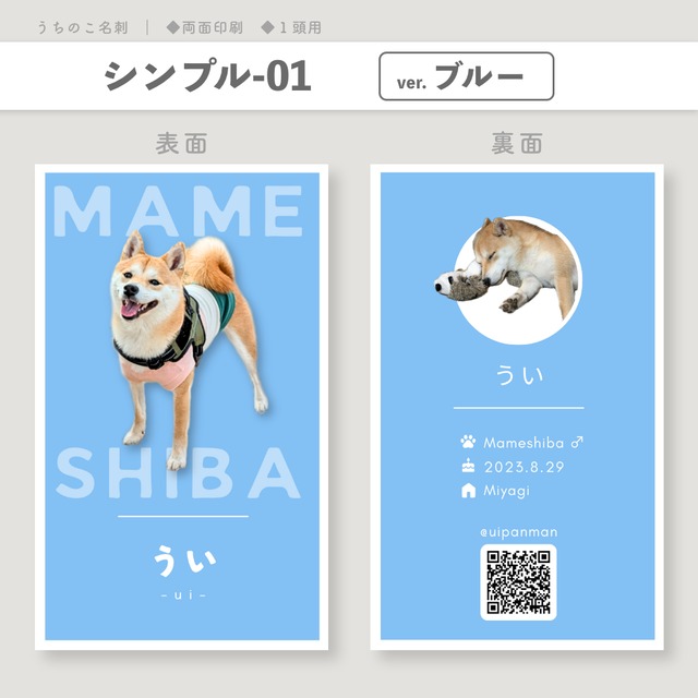 ✧こちらは "1頭用" の名刺になります ✧専門業者が印刷するため "高品質" な仕上がりに ◎ ▼商品について ______________________________ ✩︎⡱ 印刷面:両面印刷 ✩︎⡱ 枚数 :100枚 ✩︎⡱ サイズ:91mm × 55mm ✩︎⡱ 用紙 :アートポスト 220g 厚さ0.25mm (名刺印刷で一番多く使われる用紙) ▼ご準備いただくもの ______________________________ ①うちの子のお写真 ②うちの子のプロフィール情報 ▼取引の流れ ______________________________ ①この出品ページからご購入 ②上記の「ご準備いただくもの」をメッセージ機能にて送付 ③デザイン制作 ④デザイン確認 ※修正は3回まで ⑤印刷業者にて印刷 ⑥発送 ▼ご案内 ______________________________ ✩︎⡱ デザインの色味は印刷すると イメージと多少異なることがあります。 ✩︎⡱ 丁寧、迅速な対応を心がけますが、 不慣れな点はどうぞご了承ください。 #うちの子名刺 #うちのこ名刺 #ペット名刺 #犬名刺 #猫名刺 #名刺 #犬グッズ #猫グッズ #犬 #猫