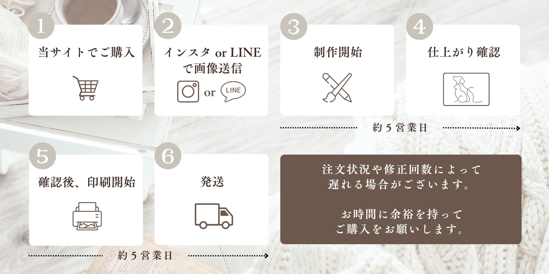 ✧オーダーの混み状況により制作開始日が遅れることがございます。 お急ぎの際はメッセージにてご連絡ください。 ✧いただいた写真をもとに水彩風にアレンジしてイラストを描かせていただきます。 ✧イラストを2L判にプリントしたものをお届けします。 ▼商品について ______________________________ ✩︎⡱ 内容 :2L判プリント (額縁は付属しておりません) ✩︎⡱ 用紙 ︰マーメイド紙 ✩︎⡱ サイズ:17.8cm × 12.7cm ▼ご準備いただくもの ______________________________ ①うちの子のお写真 ②うちの子のお名前 (入力いただいた通りに名入れします) ③ご希望の背景色 ④その他ご希望があれば ▼取引の流れ ______________________________ ①この出品ページからご購入 ②上記の「ご準備いただくもの」を公式LINEにて送付 https://line.me/R/ti/p/@919isbif ③デザイン制作 ④デザイン確認 ※修正は3回まで ⑤印刷 ⑥発送 ▼ご案内 ______________________________ ✩︎⡱ デザインの色味は印刷すると イメージと多少異なることがあります。 ✩︎⡱ 丁寧、迅速な対応を心がけますが、 不慣れな点はどうぞご了承ください。 #うちの子似顔絵 #うちのこ似顔絵